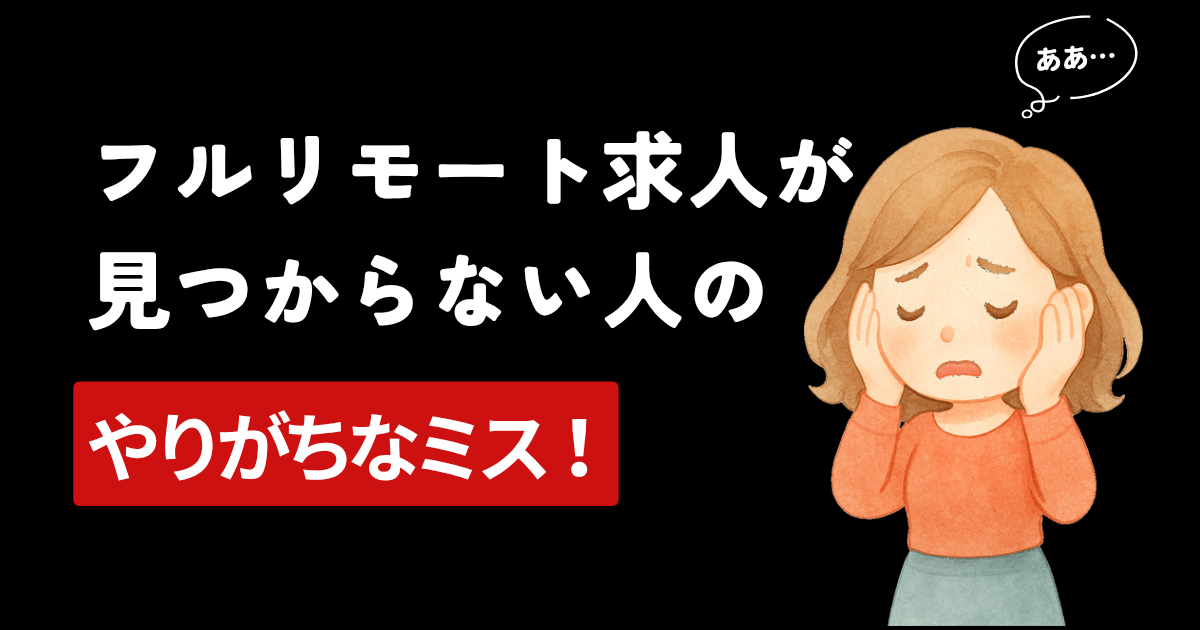 この記事では、フルリモート求人がなかなか見つからない人に共通するミスと、今日から修正できる改善策をまとめて解説します。