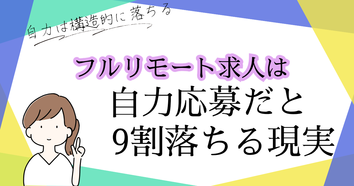 しかし、フルリモート求人に限って言えば「自力応募」は圧倒的に不利です。