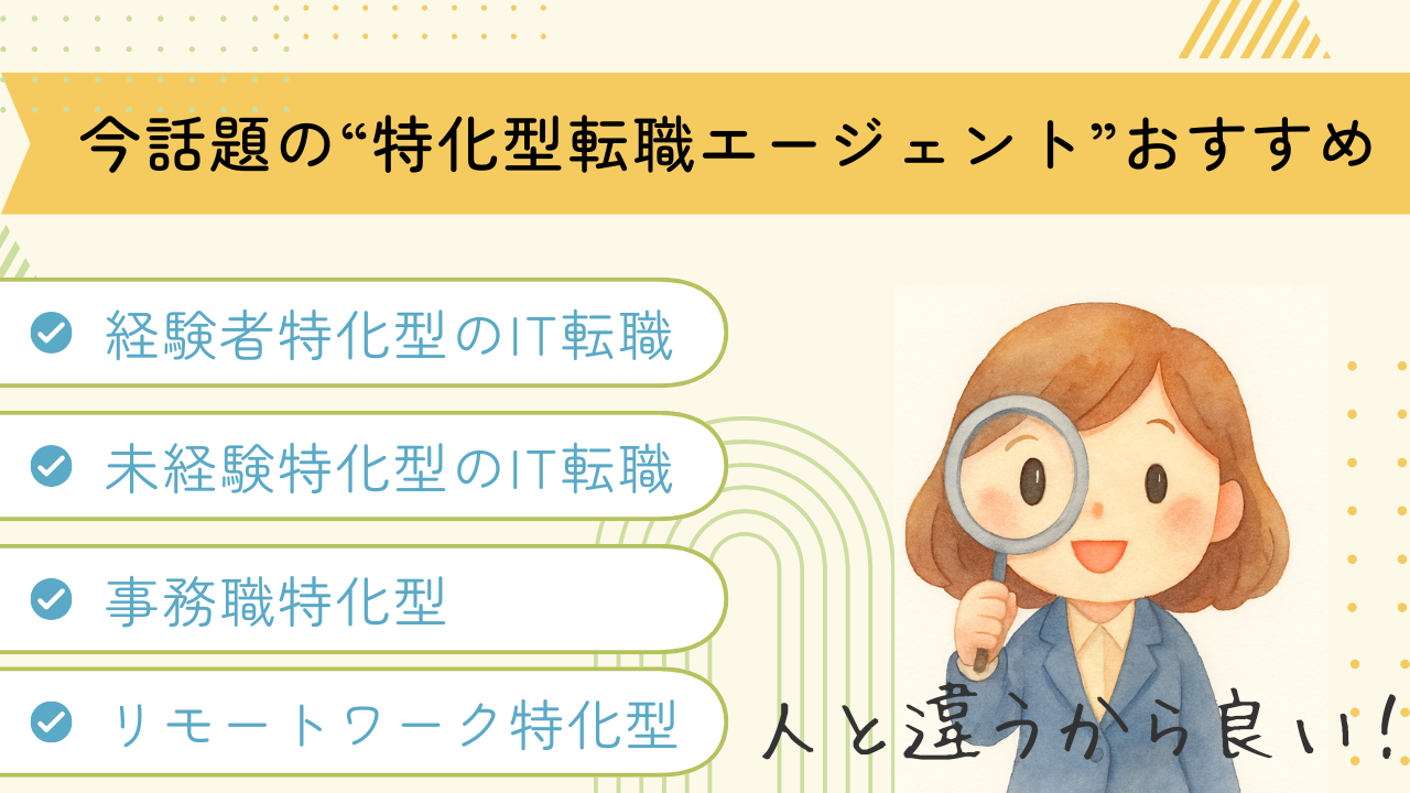 近年、転職活動の主流が「総合型エージェント」から「特化型エージェント」へとシフトしています。理由はシンプルで、専門分野に強いサポートを受けられるからです。